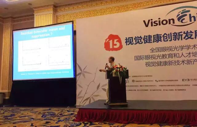 2015视觉健康创新发展国际论坛(Vision China 2015)暨全国眼视光学术大会7月30日~8月2日在天府之国成都举行。中华医学会眼科学分会主任委员王宁利教授在闭幕式上盛赞“这次大会规模空前,是眼科、视光界的盛会,也涌现出许多优质的演讲”。